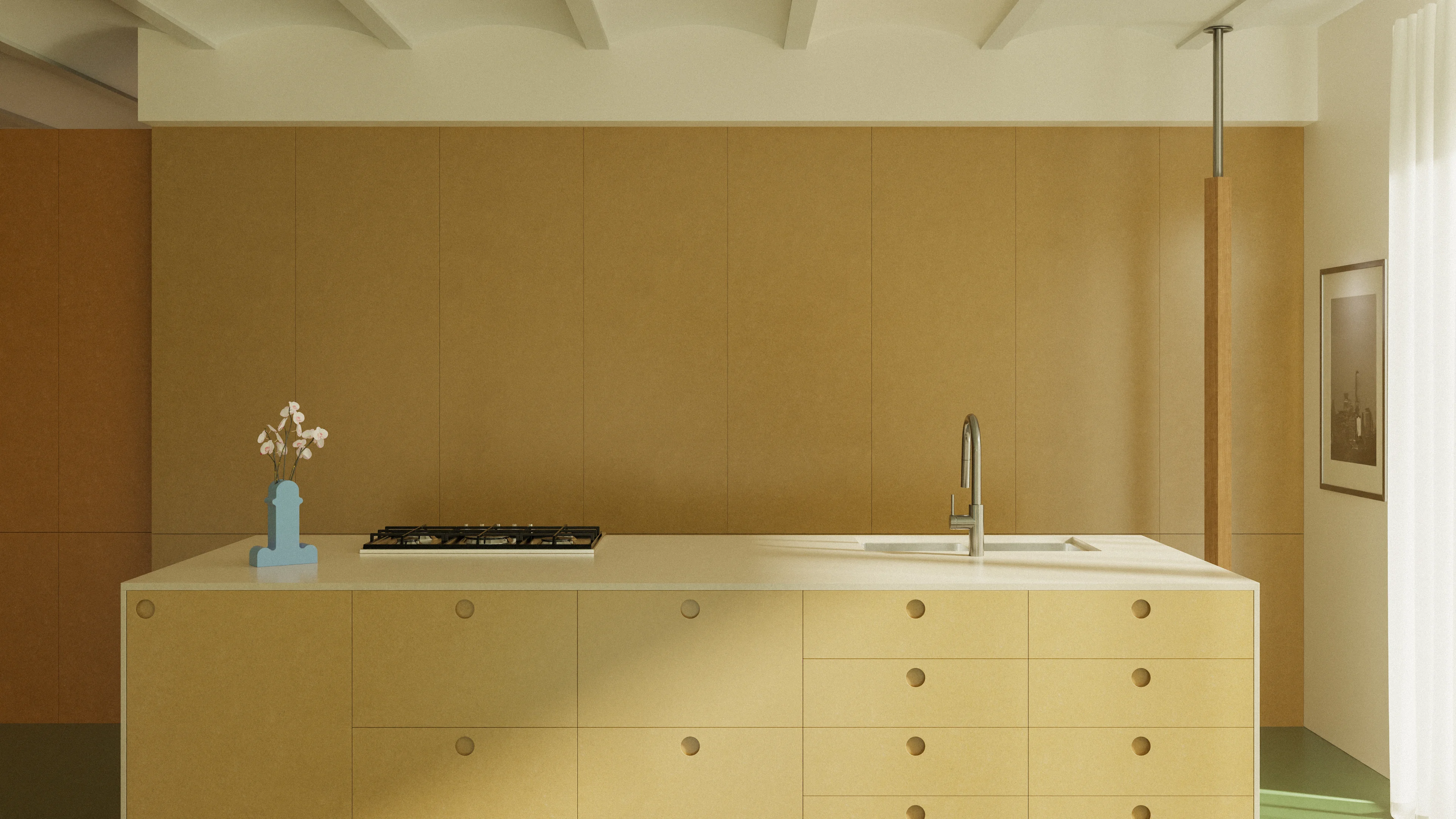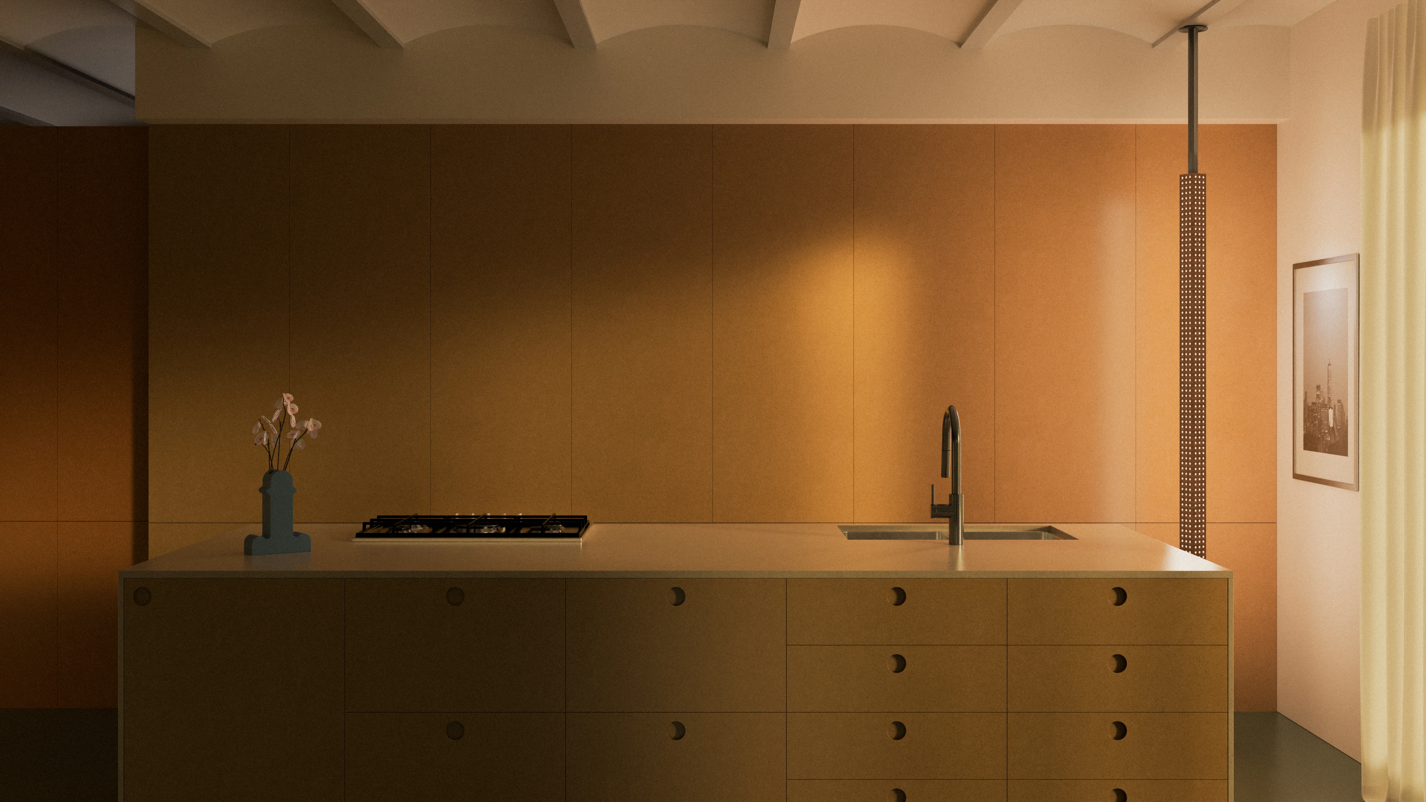 Puntal stands between ceiling and floor like a quiet argument with gravity. It doesn’t hang, it doesn’t stand: it insists. The two aluminium stems extend to meet ceiling and floor, holding the piece in tension. It's not about lighting a room: it’s about keeping it upright.